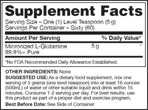 International Society of Sports Nutrition (JISSN) hanno sponsorizzato le presentazioni e pubblicato la ricerca scientifica sull’uso della L-Glutammina. Anche gli atleti, numerosi professori universitari, medici sportivi e allenatori concordano sul fatto che la L-glutammina è un amminoacido di cruciale importanza e utilità, necessario per assicurare la salute ottimale e l’attività del sistema immunitario.